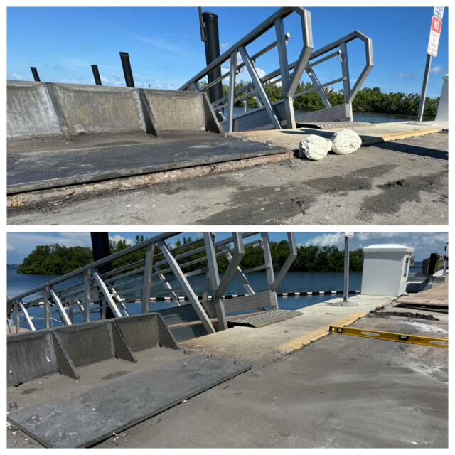 Pier 77 Seawall, located in Bradenton, Florida, serves as a key commercial hub for Safe Harbour Marinas. Heavy-duty forklifts are used daily on reinforced concrete slabs to launch vessels into the bay. Over time, the slab began settling by up to 4 inches, creating safety hazards, operational delays, and reduced performance.