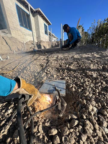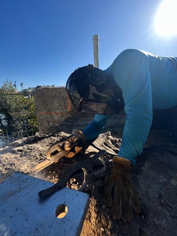 Phase 1 began with our team providing foundation support to a retaining wall using helical piles. We installed the required helicals to the appropriate capacity and moved on to the next leg of the project. It was imperative that we secured the retaining wall first, as we would not have had access to do so if we proceeded with the installation of helicals for the swimming pool first.