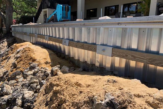 As is with most significant factors in life, natural deterioration and age leads to the expected weakening of the wooden structure over time. A bulkhead or components of a wood seawall are relentlessly subjected to harsh natural environmental factors such as water/rainfall, which are specifically corrosive elements found in Southwest Florida. Over time, corrosion of the galvanized hardware and cables along with deterioration of wood seawall structural components can advance seawall failure.