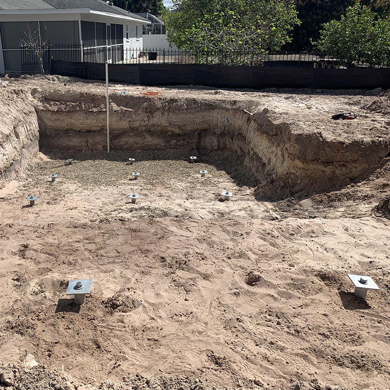 As one of Southwest Florida’s top foundation contractors, our office was ultimately hired to provide a stable foundation in which to build this homes newly designed custom pool. Once contracted, our team was slated to mobilize and build a support structure capable of dispersing the immense weight of the proposed swimming pool.
