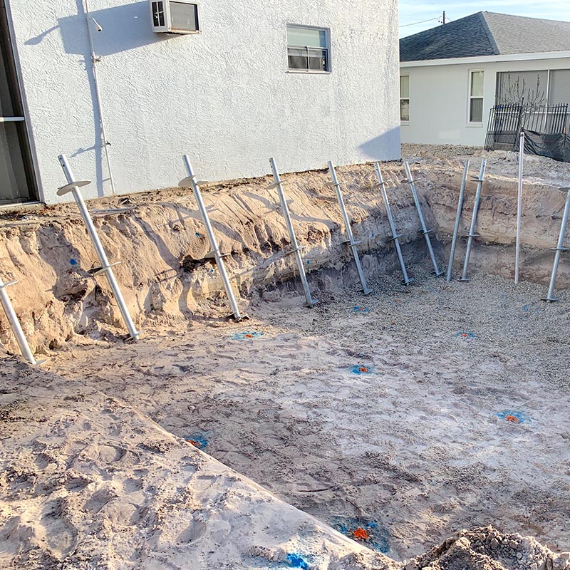 In March of 2021, Coastal Foundation Solutions was contracted by Jeff Spiro of Spiro Custom Pools to provide foundation support for a swimming pool construction project on Fort Myers Beach, FL.