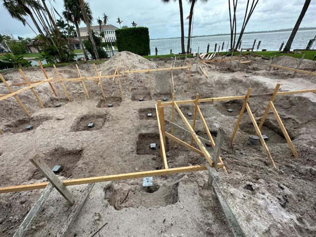 We arrived on-site and installed twenty-three (23) helical piles along with 18 additional extensions to reach an 18-ton working capacity. Using our specialized equipment we were able to complete this work within a short amount of time, without any disruption to the adjacent home or construction site. Once all of the piles were installed, our team returned to the site on another day to cut and cap the helicals with galvanized termination caps.