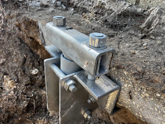 We installed 2 underpinning piles to aid in the support of an aluminum column that had failed. One helical underpinning pile was attached to the existing concrete foundation where said column had failed, while the other was placed adjacent to where the pool pump fills the residence’s existing swimming pool. Our team installed these piles using specialized equipment while minimizing site disruption. 7 tieback anchors were also installed to a depth of 14 feet to provide support and increase the longevity of the existing tieback system.