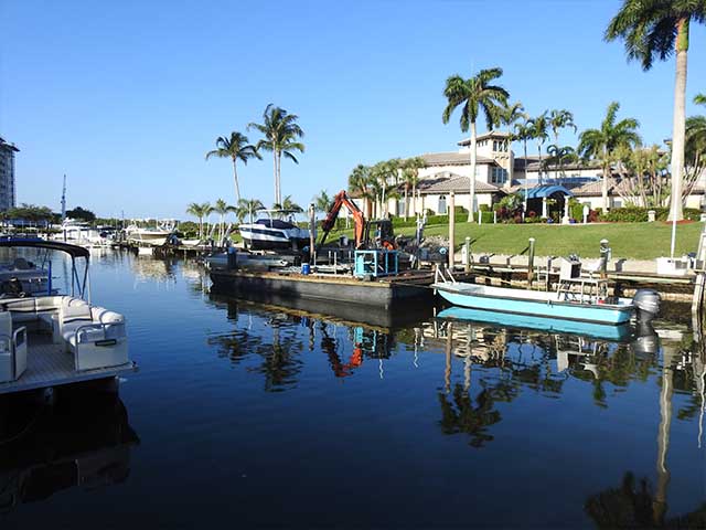 The dock master of Pelican Isle Yacht Club was informed by boat owners that a portion of existing concrete seawall was rotating out of alignment. In addition, there were numerous locations with sinkholes appearing. Deteriorating sections of the seawall are 40+ years old and the tie-back system has failed.