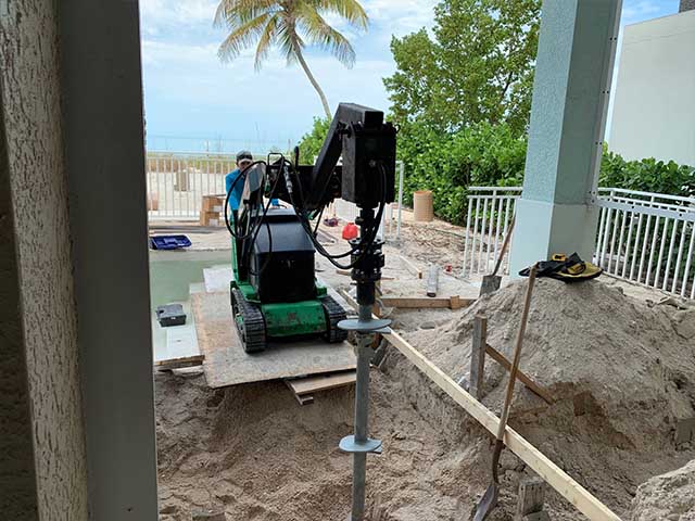 The helical piles were installed by Coastal Foundation Solutions, a Certified Installer of Seawall Savers and Chance Helical Foundations Systems.
